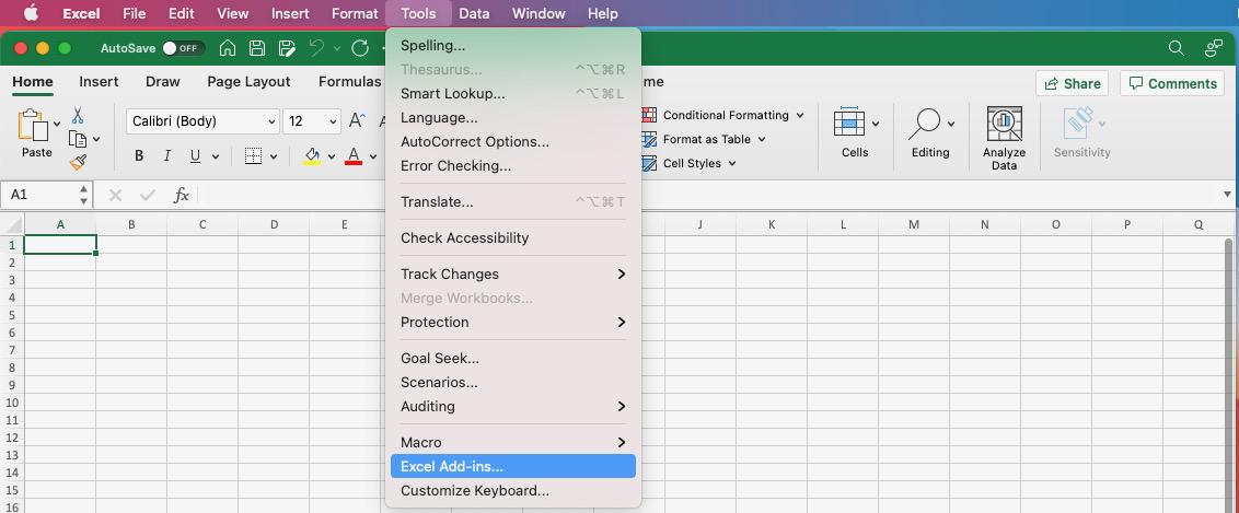 - Go to Tools → Excel Add-ins